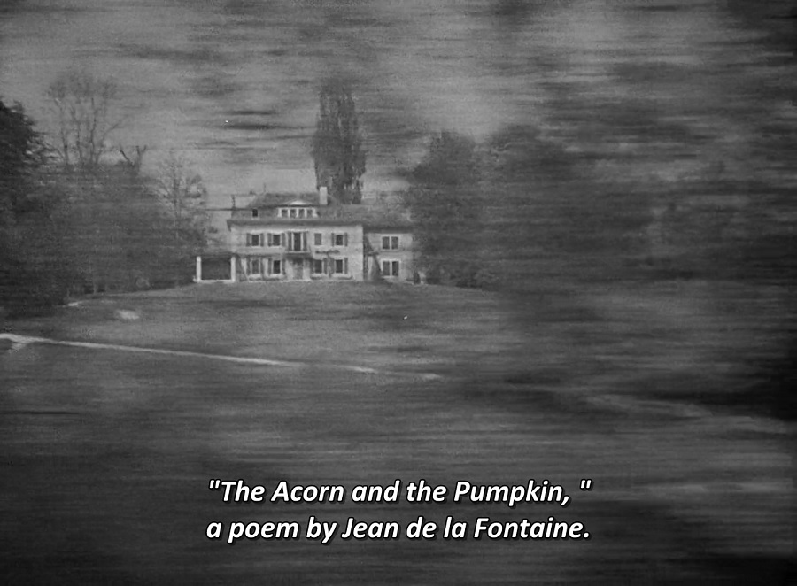 Le gland et la citrouille (ค.ศ. 1679) แปลว่า The Acorn and the Pumpkin ประพันธ์โดย Jean de La Fontaine (1621-95) นักเขียนวเทพนิยาย วรรณกรรมสำหรับเด็ก สัญชาติฝรั่งเศส รวบรวมอยู่ใน Fables de la Fontain (ลักษณะคล้ายๆนิทานอีสป แต่เป็นของฝรั่งเศส) ในหนังจะมีแค่กล่าวถึงชื่อนิทาน แต่ชาวฝรั่งเศสก็น่าจะรับรู้จักเป็นอย่างดี ซึ่งเนื้อหาสาระก็เกี่ยวเนื่องกับ Bruno อีกเช่นกัน … ฟักทองชนบทต้องการเลียนแบบฟักทองเมือง อ่านต่อเอาเองแล้วกันนะครับ
