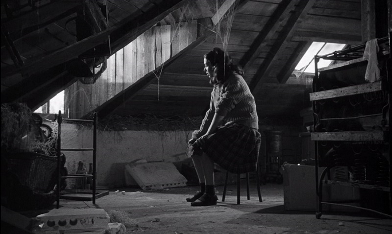 หญิงสาวคิดอะไรได้จากการเก็บของในห้องใต้หลังคา ทำให้ฉากถัดมาคิดอยากเปลี่ยนไปนับถือคริสต์ศาสนาโดยพลัน? มันคือการเปรียบเทียบสภาพของตนเองกับสถานที่ ถ้ายังขืนปล่อยตัวอยู่คนเดียวแบบนี้ สักวันมันก็จะเก่าเขรอะกลายเป็นยัยแก่ สภาพเหมือนหยากไย่ขึ้นรกเต็มไปหมด หายนะแห่งชีวิตก็คงมาเยือน เลยครุ่นคิดว่ามีความจำเป็นต้องหาบุรุษครองคู่ข้างกาย และคนที่ตนสนิทสนมชิดเชื้อที่สุดก็คือบาทหลวงหนุ่ม จึงยินยอมพร้อมทำทุกอย่าง เปลี่ยนศาสนาเพื่อได้ใกล้ชิดและมีโอกาสได้เขามาครอบครองเป็นเจ้าของ
