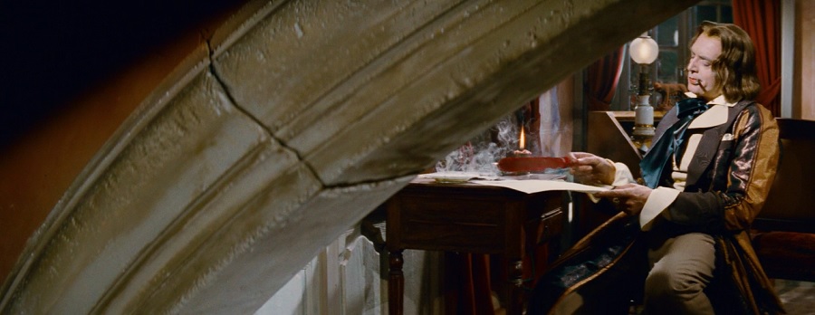 ไม่ใช่แค่ฉากใหญ่ๆเท่านั้น สถานที่เล็กๆคับแคบอย่างในรถม้า (ของ Franz Liszt) เมื่อถ่ายด้วยความกว้างงงของ CinemaScope ก็มอบผลลัพท์ที่ชวนให้อ้างปากค้างอยู่เล็กๆ ผู้ชมสามารถสัมผัสถึงระยะห่าง/ความแตกต่างขั้วตรงข้ามระหว่างสองตัวละคร แม้อยู่เคียงชิดใกล้ ร่วมรักหลับนอนในตู้รถม้าเดียวกัน แต่กลับมีความเหินห่างไกล มิอาจครองคู่อยู่ร่วม สานความสัมพันธ์ไปมากกว่านี้