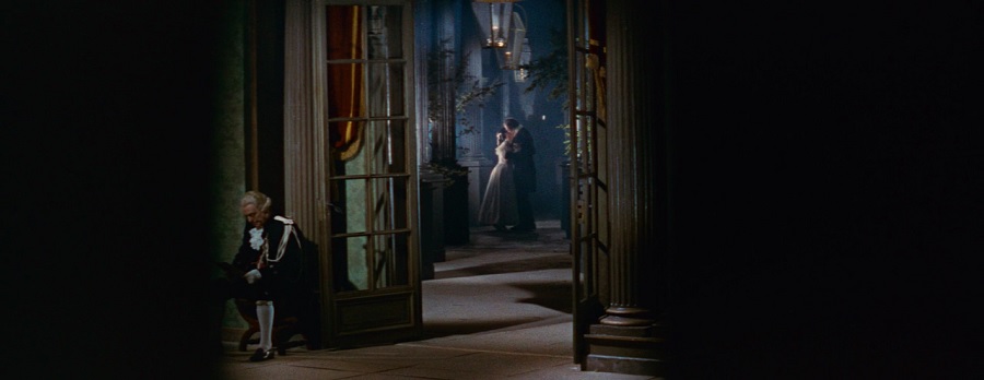 หลังจาก Lola วิ่งหลบหนี ไม่ยินยอมรับการตัดสินใจของมารดา แต่เธอกลับตอบตกลงแต่งงาน Lieutenant James (ไม่น่าจะด้วยความรัก แค่ต้องการหลบหนีออกจากการถูกควบคุมครอบงำของมารดาเท่านั้นแหละ) มุมกล้องช็อตถ่ายภาพระยะไกล ทั้งสองยืนกอดจูบอยู่ภายในห้องโถงแห่งหนึ่ง แล้วสองฟากฝั่ง(ของภาพ)ก็คับแคบลง ปกคลุมด้วยความมืดมิด ราวกับจะสื่อว่านี่คือโลกส่วนตัวของพวกเขา
