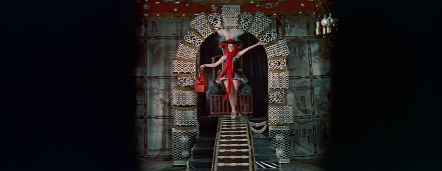 นอกจากความกว้างงงของ CinemaScope ผู้กำกับ Ophüls ยังท้าทายด้วยการนำเสนอภาพมุมลึก ระยะไกล ยังสามารถมองเห็นการควบคู่ม้าของ Lola Montes ฝ่าขบวนพาเรดขึ้นไปถึงพระราชวังด้านหลัง ราวกับเส้นทางมุ่งสู่สรวงสวรรค์ จุดสูงสุด เป้าหมายของชีวิต (ของ Lola)