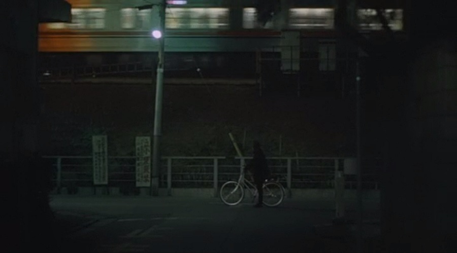 รถไฟจะคือสิ่งสัญลักษณ์ที่พบบ่อยครั้งในช่วงต้นของหนัง ครั้งแรกที่เห็นคือ Ikuo ปั่นจักรยาน(ที่ขโมยมา)แข่งกับรถไฟ เหมือนว่าเขาจะชนะด้วยละคือมาถึงตำแหน่งนี้ก่อน คงหมดแรงเลยวกกลับบ้าน