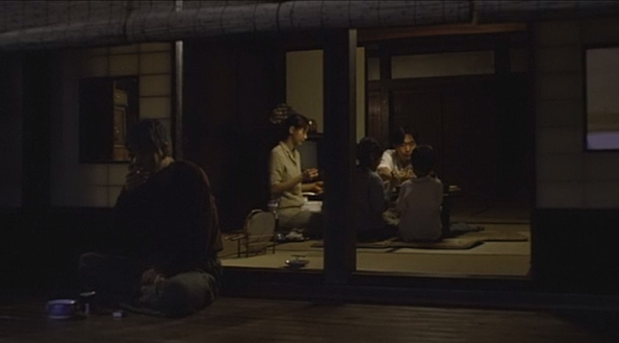 – พ่อของ Tamio นั่งสูบบุหรี่อยู่ด้านนอก (จะพบเห็นเขานั่งเหม่อลอยเรื่อยเปื่อยในตำแหน่งนี้อยู่บ่อย) ชีวิตคงเฝ้ารอวันตายสถานเดียวแล้วละ ไร้เป้าหมายปลายทางใดๆ