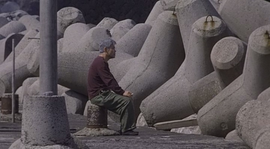 การที่พ่อของ Tamio นั่งดูดบุหรี่อยู่ตำแหน่งนี้ สื่อถึงตัวเขาที่ก็กำลังเฝ้ารอคอยความตาย ไม่รู้เมื่อไหร่จะมาถึง บางสิ่งอย่างปกป้องกันเหนี่ยวรั้งเขาไว้แบบเดียวกับเขื่อนกั้นแนวคลื่นนี้ พูดง่ายๆว่ายังไม่ถึงเวลาหมดสิ้นอายุไขนะแหละ