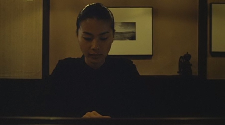 นี่น่าจะเป็นช็อตที่เห็นใบหน้านักแสดง Makiko Esumi ชัดเจนที่สุดแล้วกระมัง เธอชอบหวีรัดผมเสียเนี๊ยบ สวมชุดกระโปรงยาวสีเข้มราวกับไว้ทุกข์ ขณะนี้คือตอนรับรู้บางสิ่งอย่างก่อนสามีจะเสียชีวิตในคาเฟ่แห่งนี้ จากนั้นค่อยๆก้มหน้าลงยินยอมรับโชคชะตา
