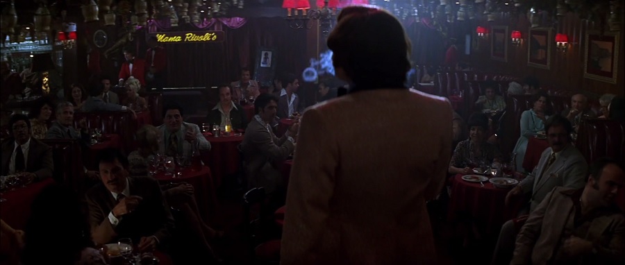 การแสดงเลียนแบบ Elvis Presley เริ่มต้นจากการหันหลัง ฉีกกางเกง ถอดเสื้อ สวมกีตาร์และวิญญาณ กลายร่างเป็นอีกตัวตนคนหนึ่ง, แต่โคตรไฮไลท์ของฉากนี้คือ Richard Strauss: Also Sprach Zarathustra (1896) ดังขึ้นก่อนบทเพลง Blue Suede Shoes ใครเคยรับชม 2001: A Space Odyssey (1968) ย่อมไม่มีวันหลงลืมภาพดวงจันทร์กำลังโผล่พ้นขอบโลกหลังจาก 3 นาทีอันมืดมิดสนิท ซึ่งนี่มีนัยยะสะท้อนถึงชื่อหนัง ชายบนพระจันทร์ Man on the Moon ของ Andy Kaufman [ว่าไปสป็อตไลท์ที่ฉายก็เป็นรูปวงกลม เหมือนพระจันทร์เต็มดวง]