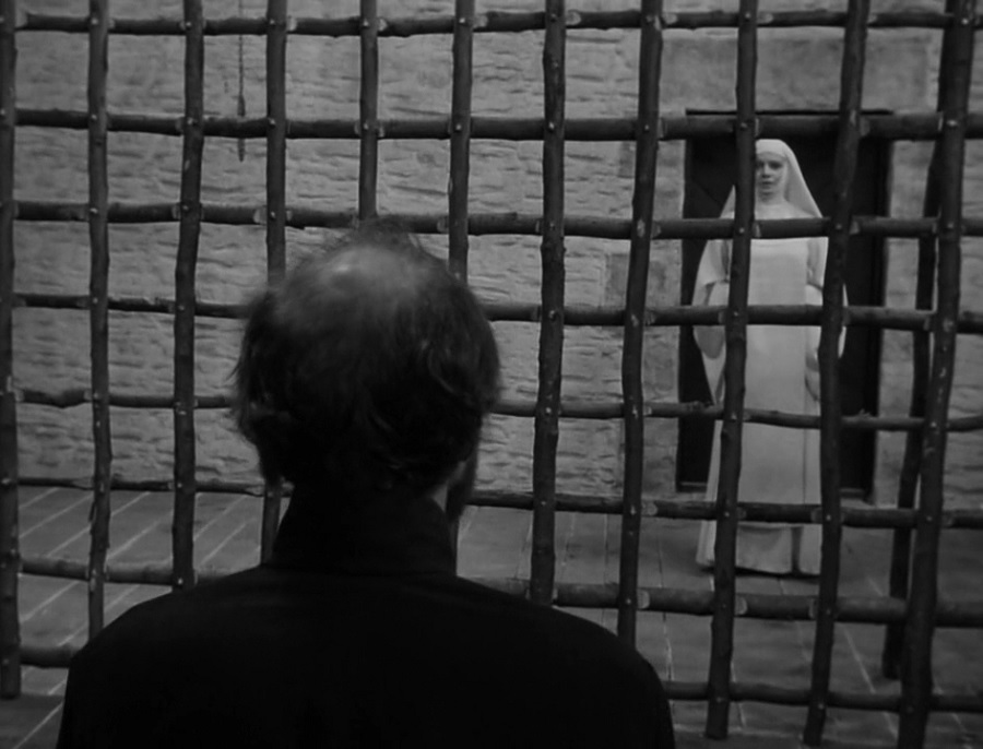 ถ้าไม่มีกรงขังห้อมล้อม เชื่อเลยว่าบาทหลวง Józef Suryn ต้องถาโถมเข้าไปฉุดกระชาก ข่มขืนกระทำชำเราแม่อธิการ Mother Joan แต่เพราะมันมีสิ่งกีดกั้นขวาง แถมหน้าต่างมีหูประตูมีช่อง (มีใครบางคนแอบจับจ้องมองมา) เขาเลยทำได้เพียงสัมผัสมือ ร่ำร้องขอคำอวยพร ก่อนได้รับการจุมพิต (มั้งนะ) จนแสดงอาการคลุ้มคลั่งออกมา