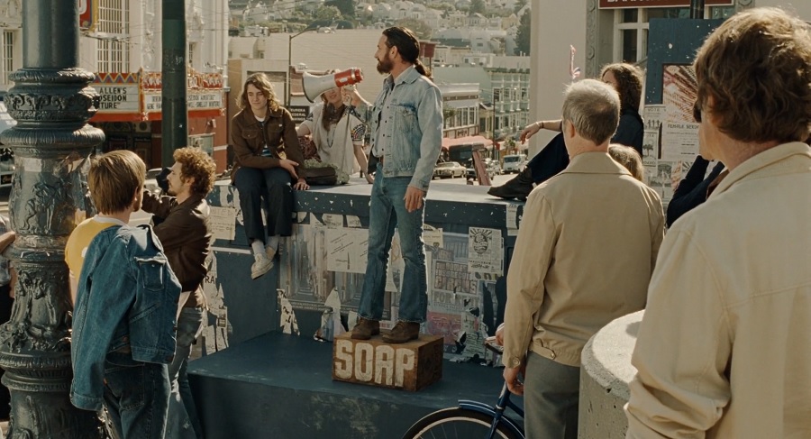ผมยังครุ่นคิดไม่ออกว่า ทำไมการเริ่มต้นประกาศตนว่าจะลงสมัครเลือกตั้งเทศมนตรี Harvel Milk ถึงยืนบนกล่องเขียนว่า Soap (แปลว่า สบู่) พื้นฐาน/แรงสนับสนุนผลักดันของเขายังอ่อนแออยู่งั้นหรือ?