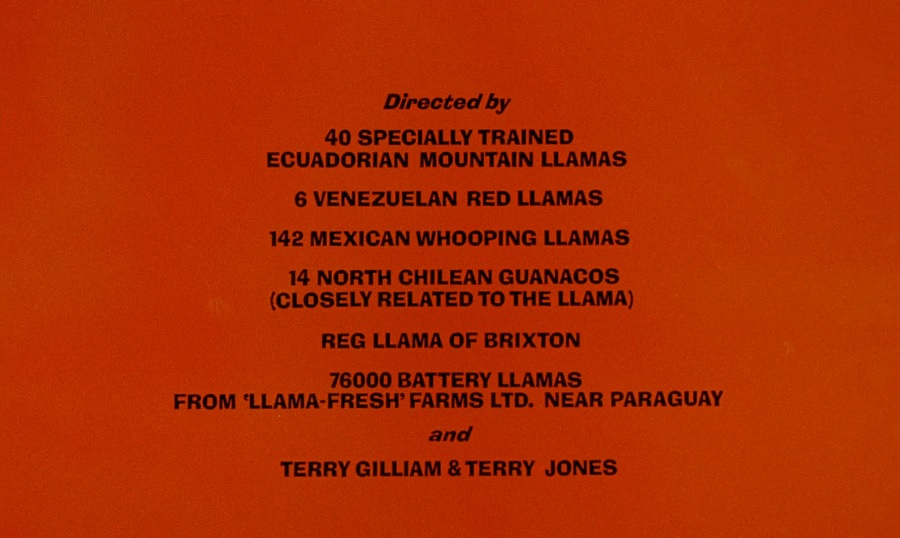 ในความตั้งใจดั้งเดิมนั้น Opening Credit อยากจะทำเป็นอนิเมชั่น (แบบเดียวกับแฟนไชร์ Monty Python เรื่องอื่นๆ) แต่ประเด็นคืองบหมด ก็เลยได้แค่ขึ้นเครดิตแบบทั่วๆไป จนกระทั่ง Michael Palin ได้แรงบันดาลใจทำ Subtitle แบบกวนๆภาษา Swedish เพราะเพิ่งได้รับชมผลงานของผู้กำกับ Ingmar Bergman แล้วต้องอ่านซับภาษาอังกฤษอย่างน่ารำคาญใจ