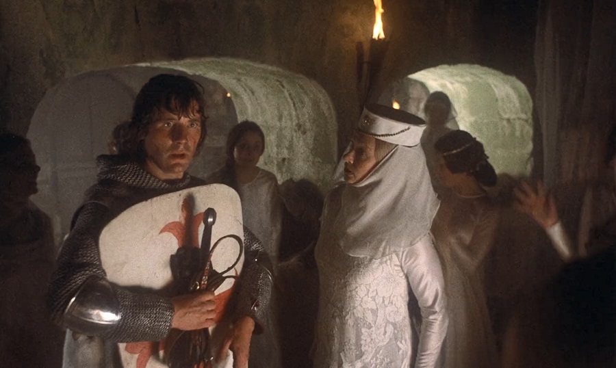 Sir Galahad the Pure (รับบทโดย Michael Palin) เมื่อพบเห็นนิมิต Holy Grail อยู่เหนือปราสาทหลังหนึ่ง จึงบุกเข้าไปพบเจอกับสาวๆ (ในซ่องโสเภณี) ถูกลวงล่อหลอกด้วยตัณหาราคะ เกือบจะสูญเสียความบริสุทธิ์จนกระทั่งได้รับความช่วยเหลือจาก Sir Lancelot แบบไม่เต็มใจสักเท่าไหร่
