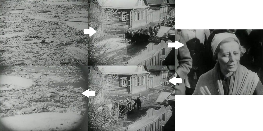 เมื่อได้รับจดหมายจากแม่ รับรู้ว่าตนเองกำลังจะได้รับการช่วยเหลือ เกิดอาการลิงโลดเต้น แต่ Pudovkin ใช้การร้อยเรียงภาพ
