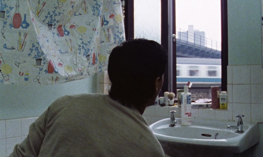 Hussein บิดาของ Omar ในอดีตเคยเป็นนักข่าวฝั่งซ้าย สาเหตุที่กลายเป็นคนติดเหล้า (Alcoholism) เพราะทนไม่ได้ต่อสภาพสังคมประเทศอังกฤษ เลยกักขังตนเองอยู่ในห้อง ไม่ได้ออกไปไหนต่อไหนมาสักพักใหญ่ๆ มุมกล้องช็อตนี้แสดงถึงโลกทัศน์อันคับแคบของตัวละคร และสังเกตภาพวาดหญิงสาวน่าจะคือภรรยา (มารดาของ Omar) คาดว่าคงเสียชีวิตจากไปแล้ว (เพราะชาวอินเดีย/ปากีสถานมักไม่ค่อยหย่าร้างภรรยานะครับ นี่น่าจะเป็นอีกเหตุผลหนึ่งทำให้เขาติดเหล้าอย่างหนัก)