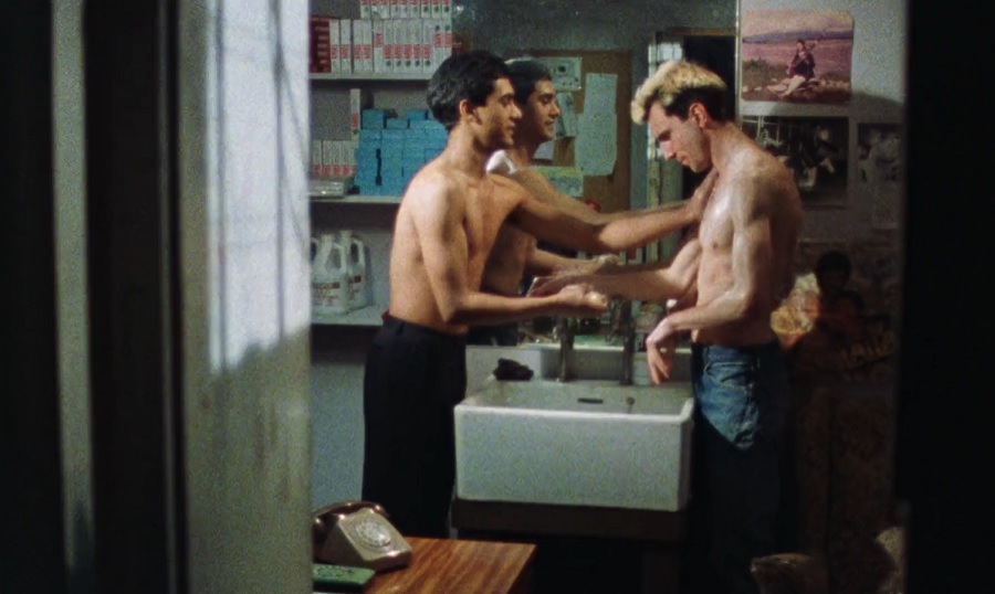 หลังจาก Johnny ได้รับการส่งเสริมสนับสนุนจากเครือญาติของ Omar ต่อจากนี้หนังจะเริ่มนำเสนอหลายๆเหตุการณ์ในลักษณะคู่ขนาน ระหว่างทั้งสองกำลังหลบมุมจุมพิตท่ามกลางความมืดมิด (แสงสีแดงแห่ง ‘Passion’ สัญญาณเตือนภัยอันตราย) พอดิบพอดีกล้องเคลื่อนมาที่ร้านซักรีด พรรคพวกเก่าของ Johnny กำลังสร้างความปั่นป่วน ทำลายสิ่งข้าวของ จนต้องรีบวิ่งไปหยุดยับยั้งก่อนจะมีอะไรสูญเสียหาย