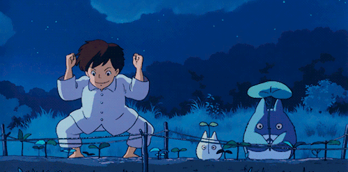 1) ขณะที่สองสาวยืนตากฝนรอรถเมล์ แล้ว Totoro เดินมายืนข้างๆ Satsuki ยื่นร่มให้ เมื่อน้ำฝนหยดลงมาเสียงดังแปะๆ ทำเอาขนลุกสั่นสะท้าน ทำตาโต ยิ้มร่า กระโดดตุ๊บ! สายฝนหยุดตกลงทันที, จริงๆแค่สายฝนของฉากนี้ก็อลังการมากๆแล้ว แต่วินาทีขนลุกซู่ยิ้มร่าตาโตของ Totoro อนิเมชั่นสื่ออารมณ์ออกมาได้อย่างทรงพลังมากๆ