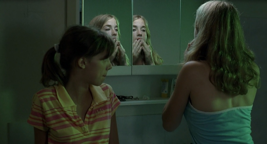 การสนทนาครั้งแรกระหว่าง Marie กับ Floriane (ในห้องน้ำ) สังเกตว่าใบหน้าของหญิงสาวบนกระจก สะท้อนถึงตัวตน/ธาตุแท้ที่มีความแตกต่างจากเปลือกนอกพบเห็น (ถูกตีตราว่ายัยร่าน-ตัวจริงกลับยังไม่เคยสูญเสียพรหมจรรย์) ซึ่งยังสามารถอ้างอิงถึงนัยยะการแสดงระบำใต้น้ำ (บนพื้นผิว-ใต้น้ำ) ได้ด้วยเช่นกัน