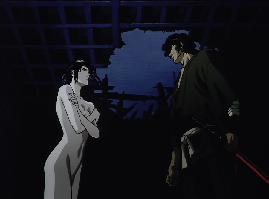 หลังจากฆ่า Shijima สำเร็จ Kagero ก็ได้เปิดเผยกับ Jubei วิธีการที่จะถอดพิษในตัวเขา ต้องใช้ พิษล้างพิษ นั่นคือร่วมรักกับเธอ (จริงๆแค่จูบก็ใช้ได้แล้วมั้ง) สังเกตว่าฉากนี้จากสีดำ-แดง กลายเป็นดำ-น้ำเงิน ราวกับหญิงสาวมิได้มีความตั้งใจสมยอม แต่ก็เปลื้องเสื้อผ้าเปลือยเปล่า พร้อมยอมเสียตัวให้เขา แต่กับถูกตอกหน้าด้วยจิตสำนึกของของพระเอก นั่นหาใช่สิ่งที่ฉันต้องการไม่
