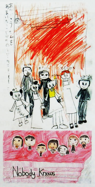 ตอนที่พาเด็กๆไปเที่ยวเล่นเทศกาลหนังเมือง Cannes กลับมาพวกเขาวาดรูปนี้ให้เป็นที่ระลึก, รูปบนของ Momoko Shimizu (รับบท Yuki) รูปล่างของ Ayu Kitaura (รับบท Kyōko)