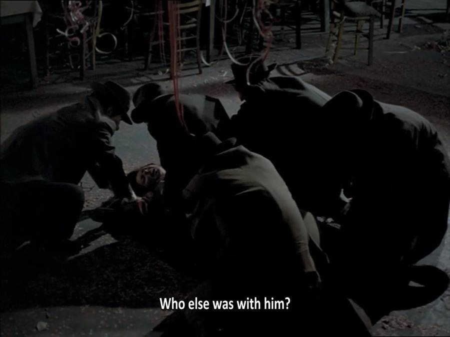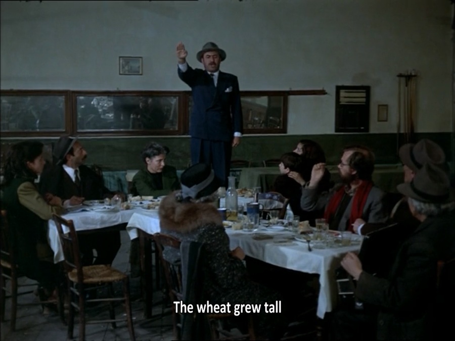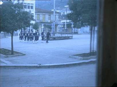 ระหว่างคณะการแสดงกำลังรับประทานอาหาร บุตรชายของ Chrysotheme แอบวิ่งออกไปภายนอกจัตุรัสกลางเมือง กล้องถ่ายลอดผ่านกระจกขณะเธอลากพาเขาหวนกลับมา พอดิบพอดีได้ยินการซักซ้อมสวนสนาม ร้องเพลงต้อนรับ Joseph Goebbels พร้อมผู้นำเผด็จการ Ioannis Metaxas จะมาถึงในวันพรุ่งนี้