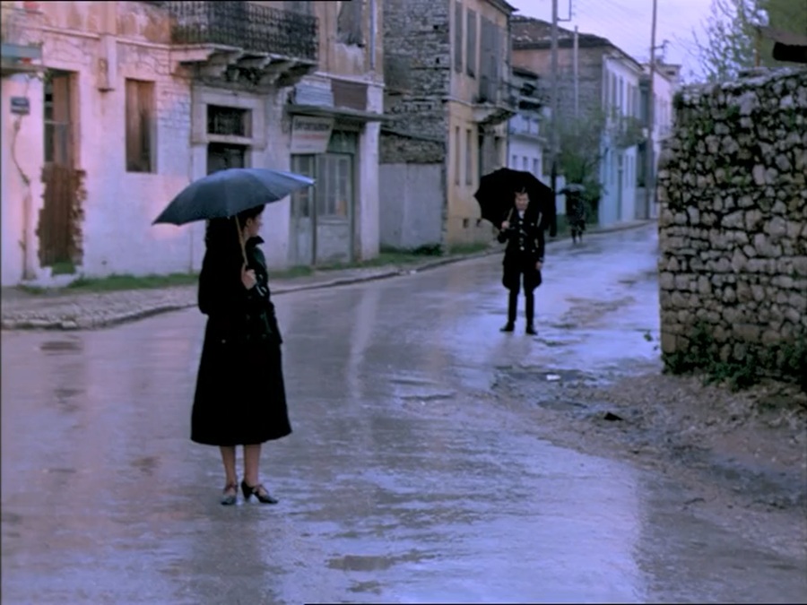 ปล. หนังมีแค่ 80 ช็อต กลับใช้เวลาถ่ายทำหลายเดือน (ถึงไม่นับช่วงหยุดกองก็ยังนานกว่า 6-7 เดือน) นี่ไม่ใช่เพราะเสียเวลาซักซ้อม โหยหาความสมบูรณ์แบบ (Perfectionist) แต่เพราะผกก. Angelopoulos เฝ้ารอคอยสภาพอากาศเอื้ออำนวย ท้องฟ้าของ Greece โปร่งโล่ง สว่างสดใสเกินไป เรื่องราวของหนังควรมีบรรยากาศครึ้มฟ้าครึ้มฝน สอดคล้องเข้ากับการถูกยึดครองโดยสารพัดเผด็จการ