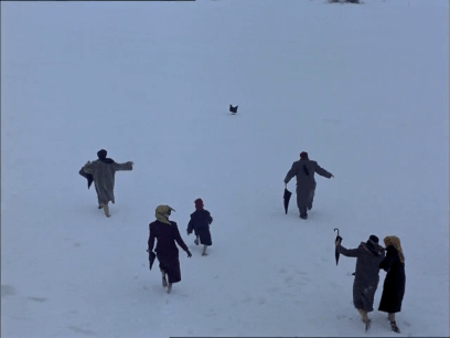 The Travelling Players (1975) ต้องถือเป็นภาพยนตร์ของผกก. Angelopoulos ใช้ประโยชน์จากการถ่ายภาพ Long Take ได้อย่างงดงาม ตราตะลึง ด้วยระยะเวลา 230 นาที มีคนนั่งนับได้ทั้งหมด 80 ช็อต (Average Shot Length (ASL) ประมาณ 172.5 วินาที = 2 นาที 52 วินาที) ด้วยปริมาณน้อยนิด ทำให้ทุกภาพของหนังเต็มไปด้วยรายละเอียด เหตุการณ์บังเกิดขึ้น-สิ้นสุด สองสิ่งแตกต่างตรงกันข้ามที่สามารถเติมเต็มกันและกัน … มีคำเรียกว่า ‘Sequence Shot’