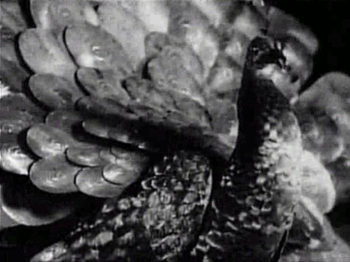 นกยูงเป็นสัตว์ที่ชอบอวดขนหางงามสง่า แต่ก็แค่ความสวยงามเท่านั้นแหละ ไม่ได้มีประโยชน์อะไรอย่างอื่น นี่เป็นการเปรียบเทียบเชิงล้อเลียนตัดสลับกับ Kerensky ขณะรอเข้าพบรับคำสั่งจาก Tsar Nicholas II