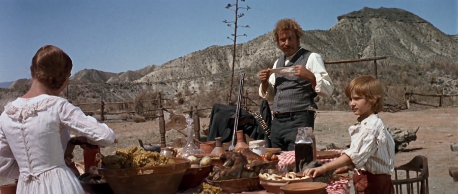 จุดเริ่มต้นของการเข่นฆ่าล้างแค้น คือการเอาเมาท์ออร์แกนยัดปาก จากนั้นค่อยๆซูมออกจนพบเห็นภาพทั้งหมดมุมกว้าง … หนังทั้งเรื่องก็มีลักษณะนี้นะครับ เริ่มจากตัวละครเป่า Harmonica ค่อยเปิดเผยรายละเอียดเรื่องราวออกทีละเล็กน้อย และที่สุดไคลน์แม็กซ์ถึงค่อยสามารถเข้าใจได้ทุกสิ่งอย่าง