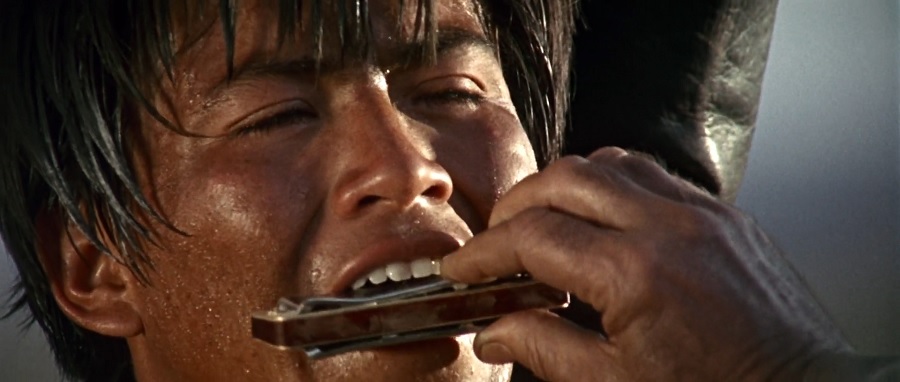 Bronson ถึงไม่ได้ดูหล่อเหลา สง่าราศีเทียบเท่า Eastwood แต่มีความคมเข้ม มาดขรึม พูดน้อยต่อยหนัก อธิบายทุกสิ่งอย่างด้วยการกระทำ และถ่ายทอดความรู้สึกผ่านเสียงเป่า Harmonica