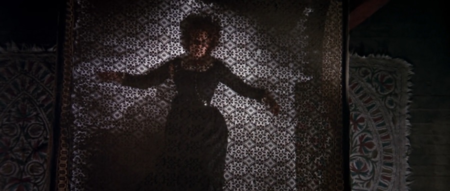 โอกาส ความหวัง และความฝันของ Jill McBain ที่จะแต่งงานมีชีวิตสุขสบายได้พังทลายลง ช็อตนี้ถ่ายจากมุมสูง Bird Eye View ผ่านลวดลายผ้าที่มีลักษณะเหมือนกรงขัง ซูมเข้าไปจนระดับ Close-Up ใบหน้าของหญิงสาว นี่ฉันจะครุ่นคิดทำอะไรต่อไปดี