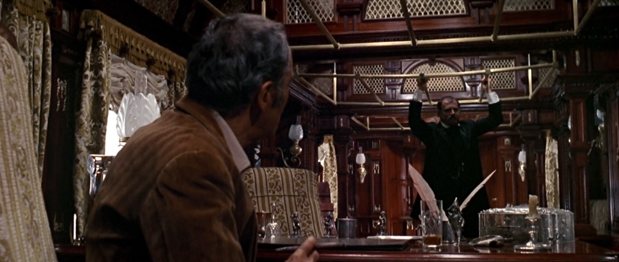 แม้จะช้าล้าหลังกว่า Mr. Morton อยู่นานหลายปี แต่ฉากนี้บนรถไฟ Frank เดินมานั่งยังเก้าอี้เจ้านาย ลองสลับตำแหน่งมุมมองสายตาดูบ้าง เอาใจเขามาใส่ใจเรา จักพบเห็นโลกปรับเปลี่ยนแปลงไปไม่ได้