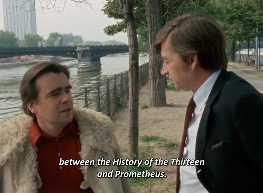 ระหว่างกำลังรีดไถเงินในคาเฟ่แห่งหนึ่ง Colin ได้รับจดหมายจากหญิงสาว Marie หนึ่งในคณะนักแสดง Seven Against Thebes นี่มีแนวโน้มสูงมากๆว่าเธออาจเป็นสมาชิกของ The Thirteen ไม่เช่นนั้นจะดักซุ่มรออยู่ทำไม? แต่เอาจริงๆมันก็ไม่แน่ นั่นเพราะ Hermine Karagheuz (ผู้รับบท Marie) เคยให้สัมภาษณ์บอกว่าตนเองไม่รู้เนื้อในใจความจดหมาย ผกก. Rivette สั่งให้ทำอะไรก็ทำตาม … ก็แล้วแต่ผู้ชมจะขบครุ่นคิดตีความ