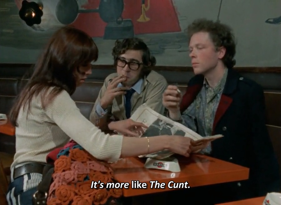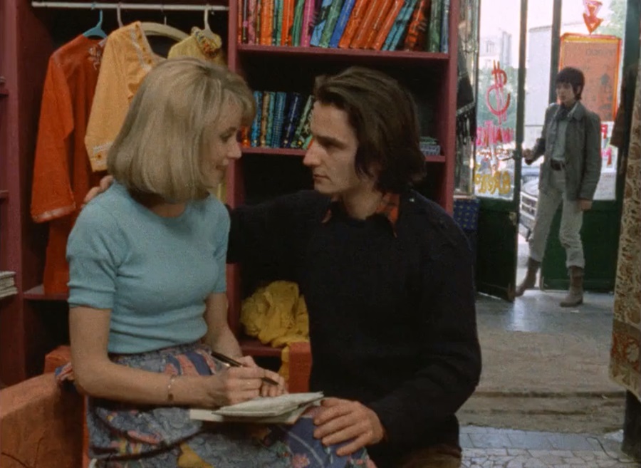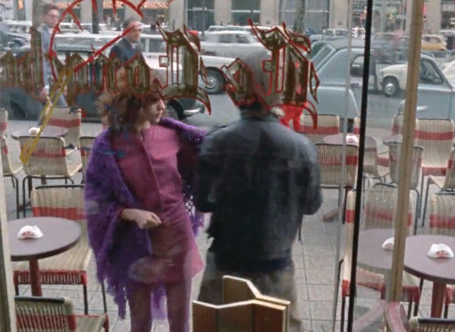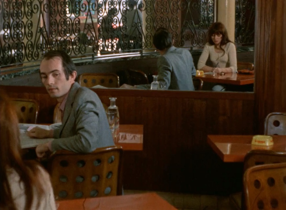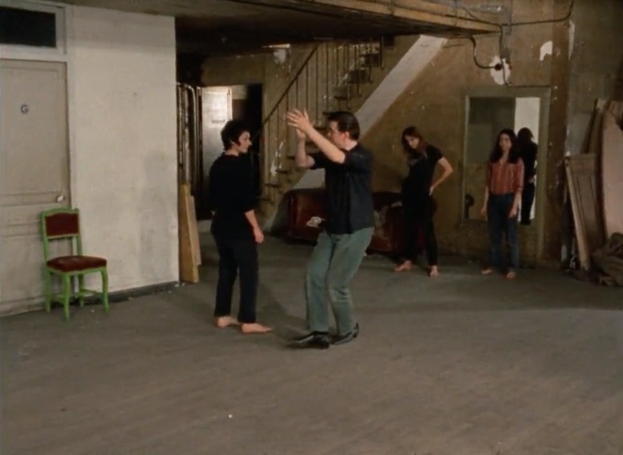 Originally the idea was to do four parallel feuilleton (Serial) stories, linked at the beginning of each episode by still shots connecting with the other episodes, rather like the old serials. We later abandoned this idea… In the 13-hour version the plot got under way after four hours of documentary, both true and false, on the two theatrical groups: it was something of a documentary about the modern experimental theatre, a little Peter Brookish or Living Theatre. And there were bits about Juliet Berto and Jean-Pierre Léaud, who were the characters outside all this; you saw him distributing his envelopes, and her doing her bit of hustling. Then came the idea of connecting the four parallel stories. It was at this point that Juliet and Jean-Pierre began to function as go-betweens for the audience, each in his own way, by trying to discover the significance of scenes or sequences of events which are as yet meaningless.