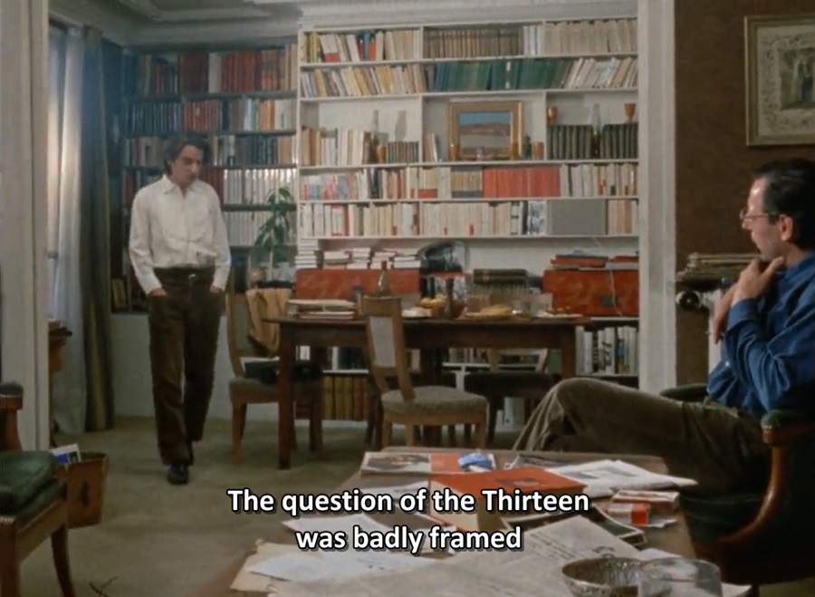 ผมมีความเพลิดเพลินกับใบหน้าเคร่งเครียด ท่าทางจริงจัง หมกมุ่นกับการขบไขปริศนาของ Léaud เพราะพอคาดเดาได้ตั้งแต่แรกแล้วว่าองค์กร The Thirteen มันไม่ได้มีอะไรคอขาดบาดตายให้ต้องเอาจริงเอาจังเพียงนั้น พอรายละเอียดต่างๆค่อยๆเปิดเผยออก ถูกล่อหลอกให้กระทำสิ่งโน่นนี่นั่น พฤติกรรมตัวละครจักกลายเป็นเรื่องตลกขบขัน … ที่หลายคนอาจขำไม่ออกสักเท่าไหร่