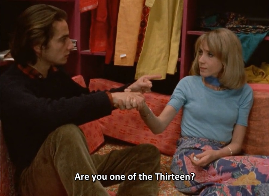 แตกต่างจาก Paris Belongs to Us (1961) ที่องค์กรลึกลับสามารถตีความได้สองแง่สองง่าม มันอาจมีอยู่จริง หรือไม่อยู่จริง ให้อิสระผู้ชมในการขบครุ่นคิด! ผิดกับ Out 1 (1971) ที่องค์กร The Thirteen ได้รับการเปิดเผยว่ามีอยู่จริง แต่ทว่ามันกลับไม่ใช่อย่างที่ใครๆครุ่นคิดจินตนาการ แตกต่างจากองค์กรที่ปรากฎในนาฏกรรมชีวิต La Comédie humaine หรือคอลเลคชั่น History of the Thirteen (1833–35) ของ Honoré de Balzac อยู่หลายขุม!