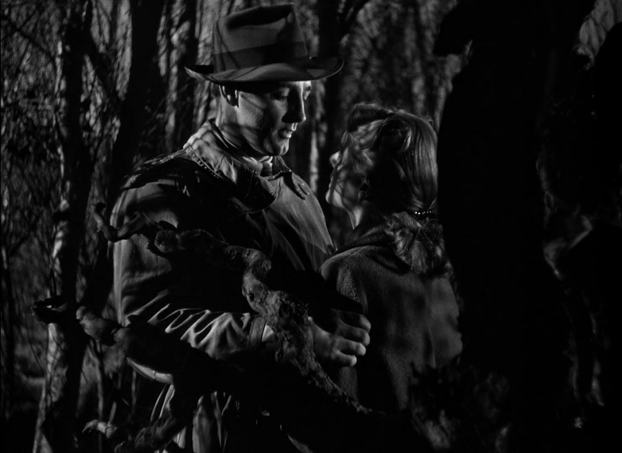 ไม่รู้ฉากนี้คือการบอกรักหรือบอกลาครั้งสุดท้ายระหว่าง Jeff กับหญิงสาวชาวบ้าน Ann Miller คนรักปัจจุบัน แต่สถานที่ถ่ายทำท่ามกลางป่าดงพงไพร รกด้วยกิ่งก้านไม้ แสงจันทร์สาดส่องมา ระโยงระยางอาบใบหน้าเรือนร่างพวกเขา เกี่ยวเนื่องพัวพันไม่ต่างจากโซ่ล่าม มิสามารถหาหนทางออกอยู่ร่วมครองคู่ได้อีกต่อไป