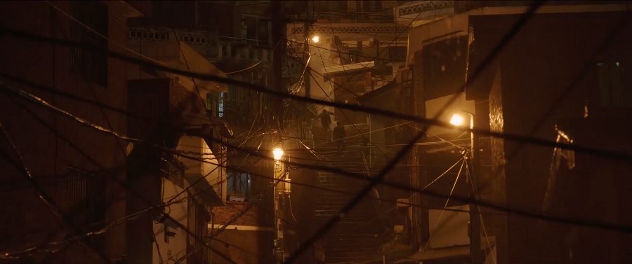 หนึ่งใน Sequence ที่ผมชื่นชอบสุดของหนัง หลังจากที่ครอบครัว Kim ได้พบเจอกับเรื่องราวไม่คาดคิดถึง จนสามารถหลบหนีออกจากบ้าน Mr. Park พวกเขาออกวิ่งลงบันได ร้อยเรียงปรับเปลี่ยนทิศทางมุมมองไปมาในลักษณะ Montage ไม่รู้จักถึงกาลสิ้นสุดเมื่อไหร่ … คือจะลงต่ำให้ถึงขุมนรกเลยหรือยังไง
