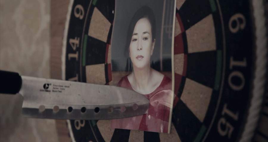 ผมนึกถึง 3-Iron (2004) ที่นางเอกพยายามยืนบดบังพระเอกไม่ให้ซ้อมตีกอล์ฟ, มาคราวนี้ Jang Mi-sun เอารูปตนเองมาติดแทนภาพวาดหญิงสาว (ตัวแทนของมารดาตอนที่ยังไม่รับรู้จัก) เพื่อให้เขาเลิกเล่นเกมปาเป้า (สัญลักษณ์ของความรุนแรง เขวี้ยงขว้างมีดด้วยอารมณ์โกรธเกลียดเคียดแค้น) จักได้มีจิตใจอ่อนโยน กลับตัวกลับใจกลายเป็นคนใหม่