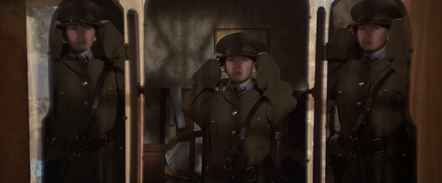 ระหว่างการหวนระลึกความทรงจำวัยเด็กของ Pink จะมีขณะหนึ่งที่เขาสวมเครื่องแบบทหารของพ่อแล้วยืนส่องหน้ากระจก นี่สะท้อนถึงการโหยหา คิดคำนึงถึง อยากจะได้รับความอบอุ่นแอบอิงชิดใกล้ แบบพ่อและเด็กอีกคนที่เขาพบเห็นในสวนสาธารณะ ซึ่งจะมีการตัดสลับกับภาพของพ่อที่กำลังขยับหมวก (แบบเดียวกันเปะ)