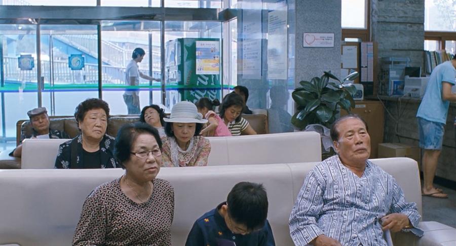 ภาพแรกของ Yang Mi-ja นั่งอยู่ท่ามกลางฝูงชน! คนที่เพิ่งรับชมหนังครั้งแรก ยังจดจำใบหน้าไม่ได้ ย่อมต้องพยายามจับจ้องมองหา ถ้าไม่เพราะโทรศัพท์ดังขึ้นมา คงตอบไม่ได้ว่าคือใคร? นั่งอยู่ตรงไหน? รายล้อมรอบด้วยผู้สูงวัย … เคลือบแฝงนัยยะ Yang Mi-ja คือตัวแทนของผู้สูงวัยเหล่านี้แหละ!