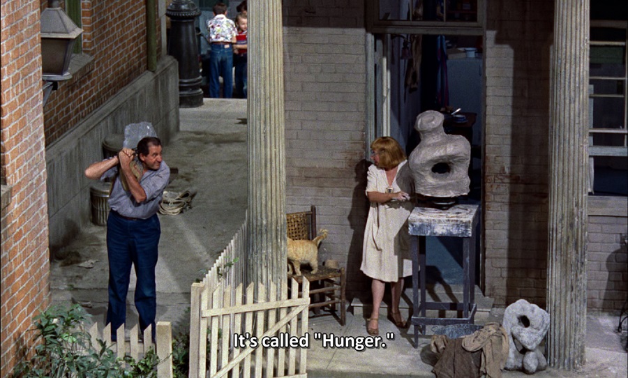 คงไม่ผิดอะไรถ้าจะมองว่า Rear Window (1954) ไม่ต่างจาก Love Actually (2003) ร้อยเรียงเรื่องราวความรักหลากหลายรูปแบบ (หลากหลาย Genre) แตกต่างตรงที่ไม่ได้แบ่งแยกออกเป็นตอนๆ แต่ละห้องพักล้วนมีเรื่องราว เหตุการณ์บังเกิดขึ้นแตกต่างกันไป คนโสดโหยหาคู่ครอง หนุ่ม-สาวข้าวใหม่ปลามัน สามี-ภรรยาอยู่กินกันมาหลายปี รวมถึงพระเอก Jeff ถูกเกี้ยวพาราสีโดยสาวสวย Lisa เมื่อไหร่จะยินยอมตอบตกลงแต่งงาน … ช่างเป็นอพาร์ทเม้นท์ที่ตลบอบอวล คละคลุ้งด้วยกลิ่นอายความรัก ‘Symphony of Love’