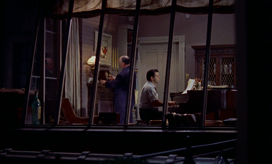 อพาร์ทเม้นท์ของสามี Lars Thorwald และภรรยา Mrs. Anna ทั้งสองมักแยกกันอยู่คนละห้อง (ห้องนั่งเล่น-ห้องนอน) แสดงถึงความแตกแยก ขัดแย้ง แม้แต่เฉดสีผนังภายในยังมีความแตกต่าง ผกก. Hitchcock พยายามทำออกมาให้ผู้ชมสังเกตไม่ยาก เข้าใจปัญหาของทั้งสองได้โดยทันที