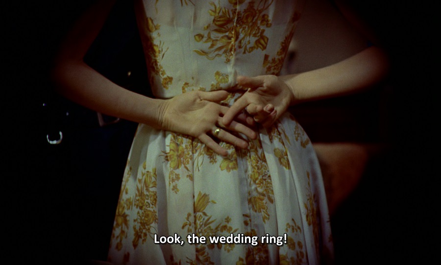 ความบ้าบิ่นของ Lisa ทำการปีนป่ายขึ้นไปยังห้องพักของ Lars Thorwald เพื่อค้นหาแหวนหมั้นของ Mrs. Anne สำหรับใช้เป็นหลักฐานมัดตัวฆาตกร พอพบเจอก็สวมใส่นิ้วนาง แล้วจงใจเอามือไขว้หลัง ชี้นิ้วให้ Jeff สังเกตเห็น ซึ่งสามารถสื่อถึง ‘Double Ring’ เพราะเธอหมั้นหมายอยู่ก่อนแล้วกับเขา ขณะนี้จึงเหมือนสวมแหวนสองวง แสดงออกในเชิงท้าทาย ตั้งคำถาม เมื่อไหร่เราจะได้แต่งงานกัน?