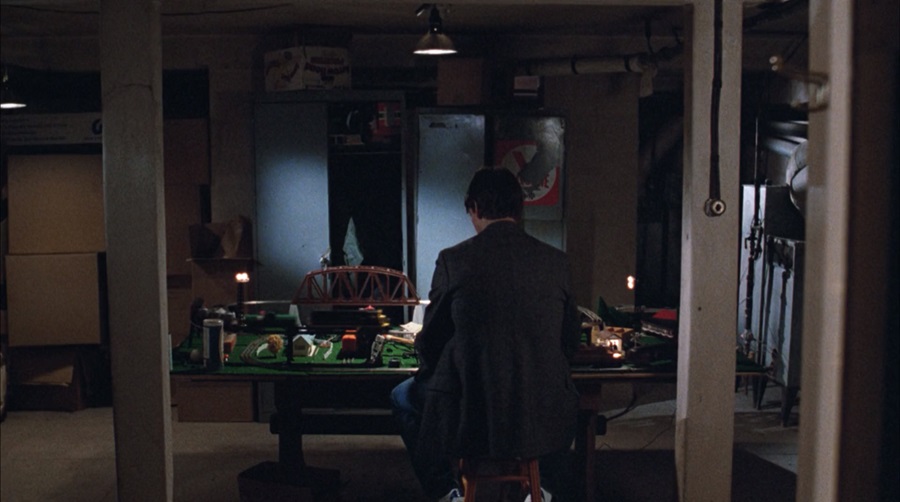 หลังเสร็จจากการสัมภาษณ์ Joel มายังห้องเก็บของ ละเล่นรถไฟจำลอง (ของเล่นโปรดของผกก. Brickman) ของเล่นเมื่อตอนเป็นเด็ก คงเคยใฝ่ฝันอยากเป็นวิศวกร (แต่หนังไม่ได้ระบุว่า Joel ตั้งใจจะเรียนต่อ/ทำงานอะไร) ขณะนี้คือการมองย้อนกลับหาอดีต ตระหนักว่าความฝันดังกล่าวคงไม่วันเป็นจริง … เพราะได้พูดคำว่า “What the fuck” ต่อหน้าผู้สัมภาษณ์ คนสติดีที่ไหนจะให้เข้าศึกษาต่อ