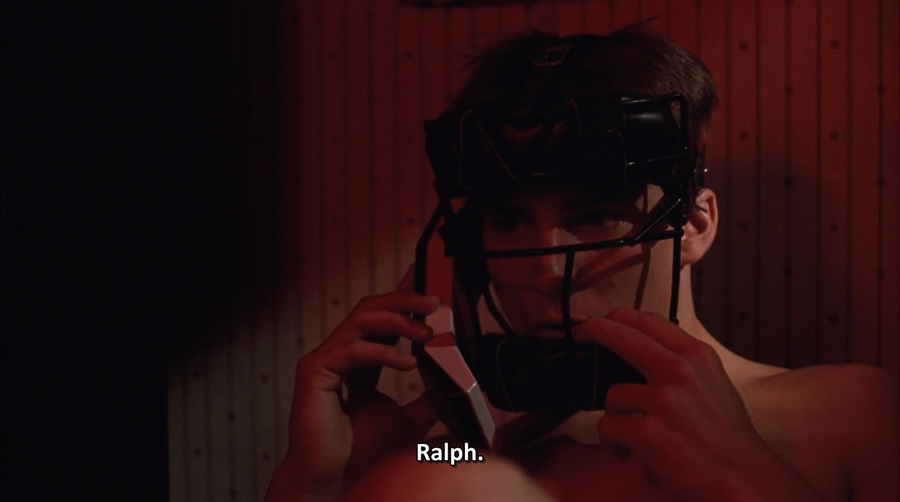 ตอนที่ Joel ตัดสินใจโทรศัพท์หา Lana นอกจากแสงไฟกระพริบสีแดง (สัญญาณเตือนการกระทำ ว่าเป็นสิ่งไม่ถูกต้องเหมาะสม) เขายังสวมใส่หมวกกันน็อค (ของกีฬาอเมริกันฟุตบอล) สัญลักษณ์ของการป้องกัน ปกปิดบัง พูดบอกชื่อปลอม Ralph จะได้ไม่รู้สึกผิดในตนเอง