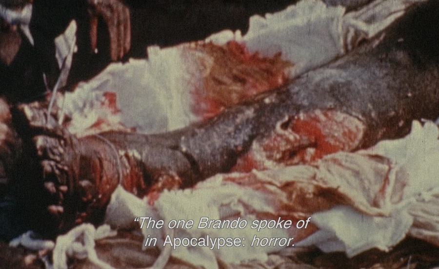 ขณะที่ขบวนรถไฟ ‘crisscrossed ‘ วิ่งตัดไปตัดมาคือภาพแทนญี่ปุ่น, ผมครุ่นคิดว่าภาพ(และข้อความ)ที่สามารถใช้เป็นตัวแทนสถานการณ์การเมืองวุ่นๆวายๆของ Guinea-Bissau ก็คือซากศพ หนอนชอนไช และคำว่า “Horror” ได้ยินเสียง Marlon Brando จากโคตรภาพยนตร์ Apocalypse Now (1979)