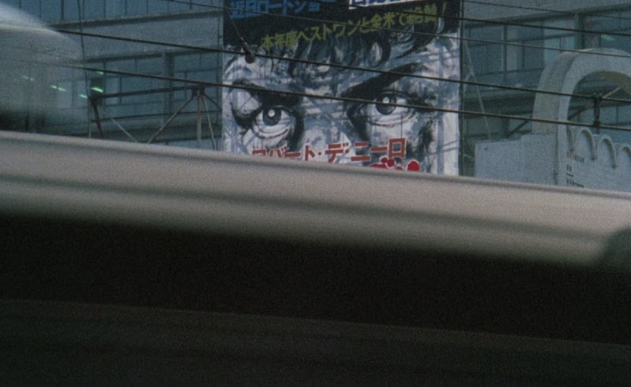 วินาทีที่แมวดำ/หญิงคนสุดท้ายลืมตาขึ้นบนขบวนรถไฟ ตัดไปภาพภายนอก ขบวนรถไฟกำลังแล่นผ่าน พบเห็นโปสเตอร์ดวงตาขนาดใหญ่ คาดเดาไม่ยากเลยว่าภาพยนตร์เรื่องใด? Raging Bull (1980)
