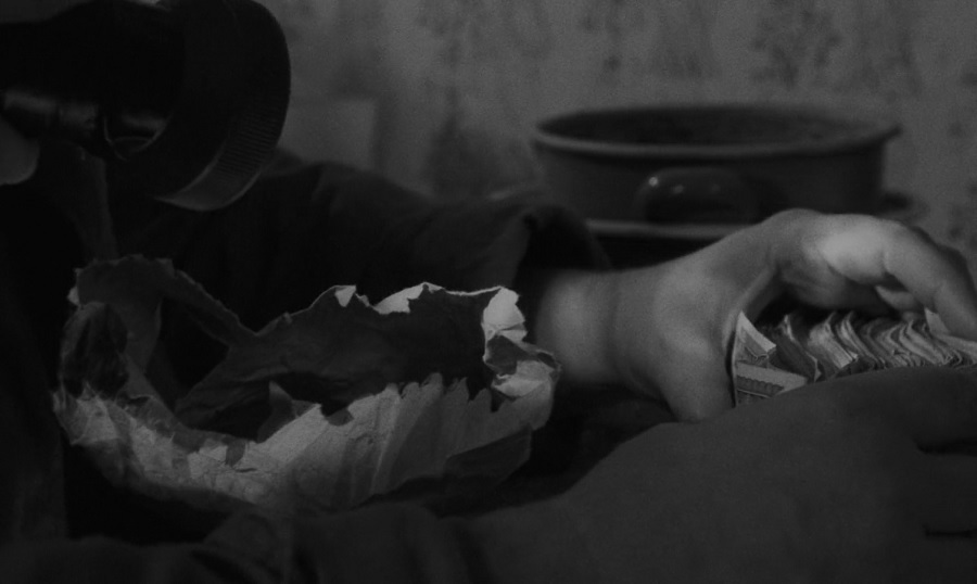 ฉากนับเงินมีอะไรตลกๆอยู่เยอะนะ, อย่างแรกนี่ไม่ใช่เงินของพวกเขา (เป็นของคนทั้งหมู่บ้าน) แต่กลับทำเหมือนเป็นของตนเองไปเรียบร้อยแล้ว! ใช้ไฟฉายสาดส่องขณะนับเงิน มันควรต้องทำกันแอบๆ ลับๆล่อๆไม่ใช่รึ? แถมต่อให้มีแสงสว่าง Schmidt ก็ยัง(แสร้ง)นับผิดนับถูก แล้วจะใช้ไฟฉายเพื่อ?