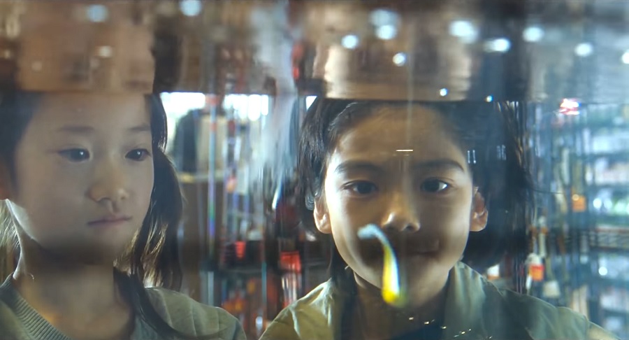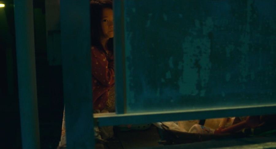 เด็กหญิง Yuri ถูกทิ้งขว้างเหมือนขยะอยู่ตรงระเบียงห้อง ภาพช็อตนี้มีนัยยะถึงการมีตัวตนอันน้อยนิด ผ่านช่องว่างเล็กๆของเธอที่น้อยคนจะมองเห็นให้ความสนใจ ในมุมกลับกันก็เช่นกัน เพราะพ่อ-แม่ ไม่เคยให้ความสนใจใยดี เลยมองคนอื่นออกสู่ภายนอกด้วยความกว้างประมาณนี้แหละ