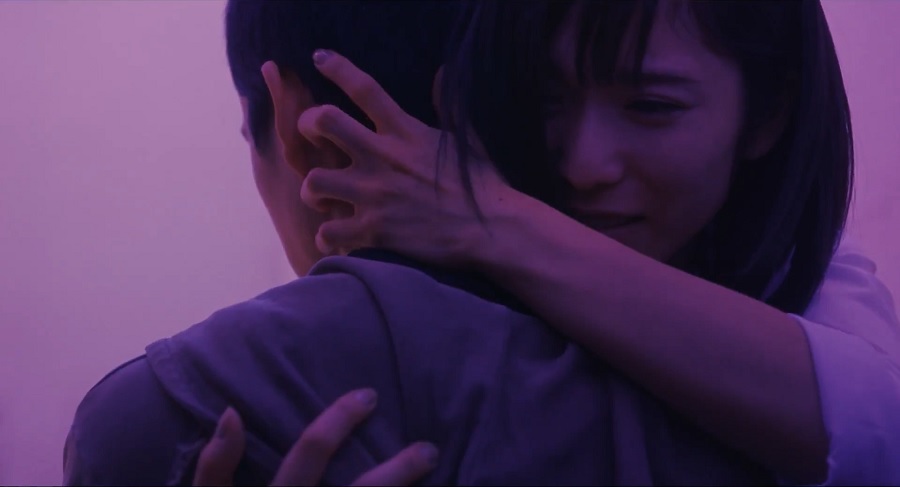 ผมชอบการใช้แสงสีม่วงอ่อนๆของฉากนี้อย่างมาก คือส่วนผสมของความรัก (ชมพู) กับ Sex (น้ำเงิน) เป็นความต้องการเติมเต็มซึ่งกันและกัน กอดอย่างแนบแน่น สนิทสนมรักใคร่ไม่ใช่ด้วยคำพูดแต่ความรู้สึกจากใจ แทบจะเข้าใจกันและกันโดยทันทีว่าชีวิตผ่านอะไรๆมา