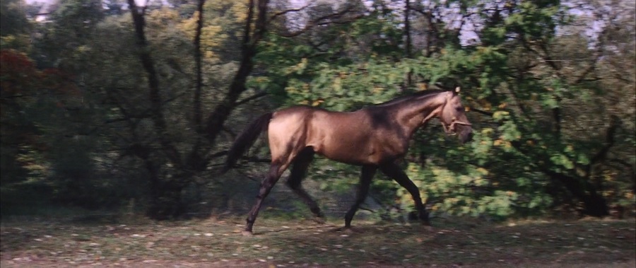 ม้า สัตว์สัญลักษณ์ของชีวิต จิตวิญญาณ อิสรภาพที่มนุษย์ใคร่โหยหา ฉากบนโลกมีลักษณะรูปธรรมตัวตนพบเห็นสองครั้ง ภายนอกกำลังวิ่งเล่น และถูกกักขังในโรงนา, ซึ่งพออยู่บนสถานีอวกาศ จะพบเห็นภาพวาดนามธรรมจับต้องไม่ได้