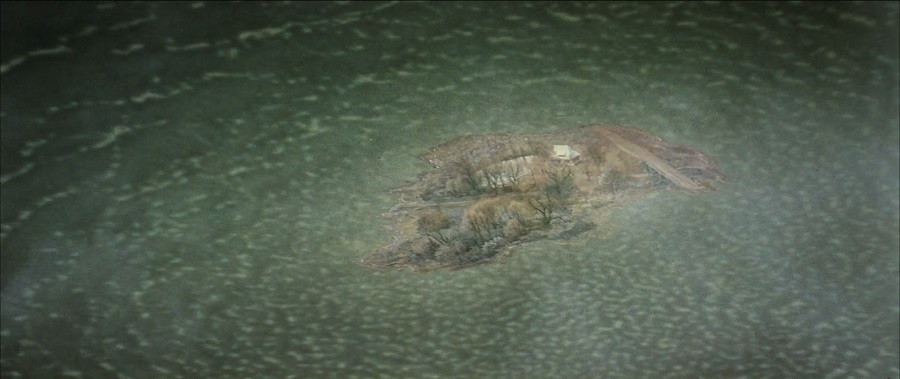 กล้องค่อยๆเคลื่อนถอยจากมุมสูงด้วยเฮลิคอปเตอร์ ก่อนถูกตัดแต่งซ้อนภาพให้เห็นเสมือนว่า บ้านของ Kris อยู่ท่ามกลางมหาสมุทรของ Solaris